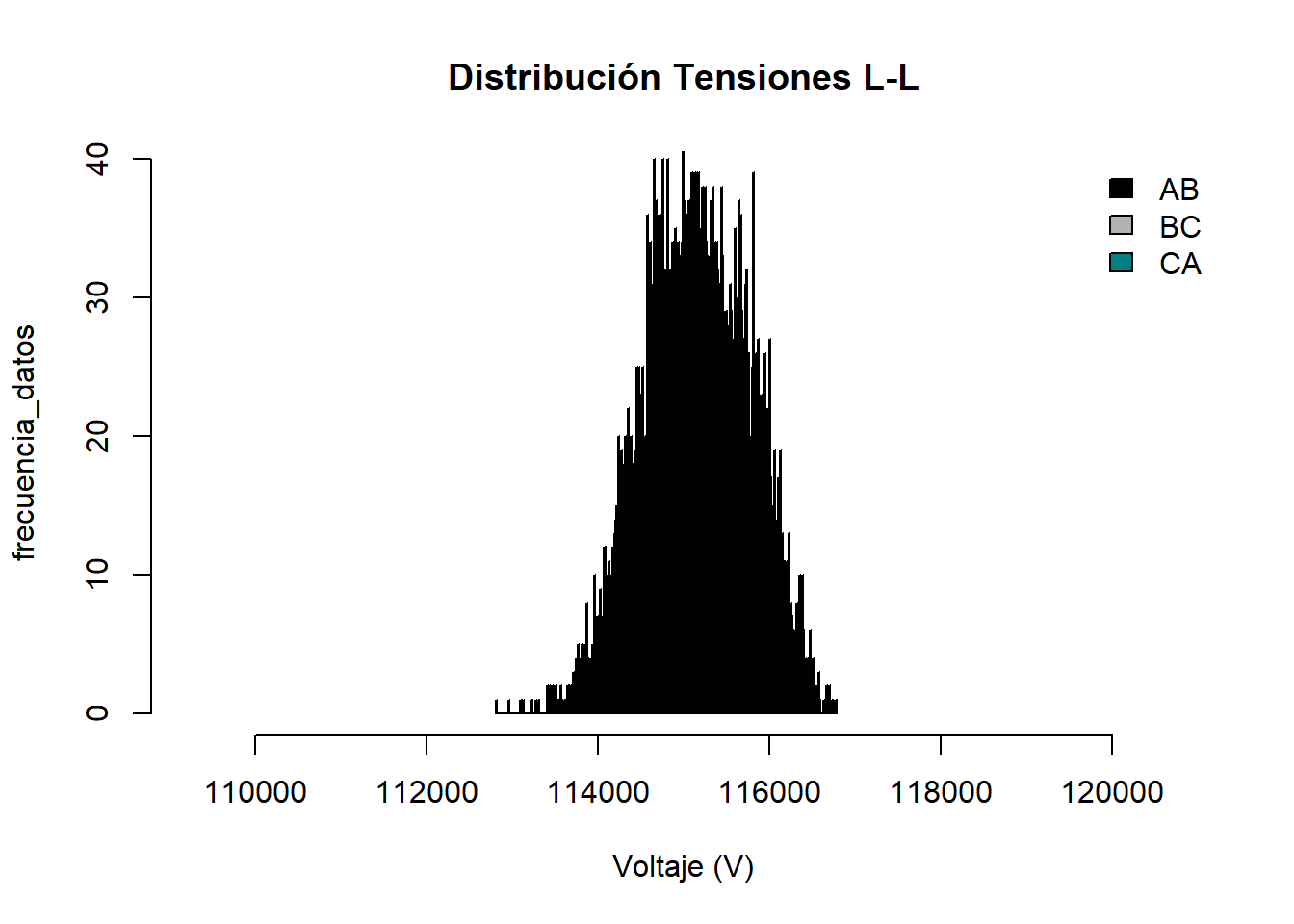 El voltaje promedio RMS se mantuvo dentro de los límites recomendados de ±5%, durante todo el periodo de medición, es un voltaje muy robusto que no presentó ninguna variación de consideración fuera de estos límites.